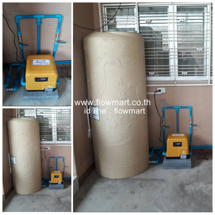 งานติดตั้งปั๊มน้ำแบบแรงดันคงที่ Mitsubishi EP-305R + ถังเก็บน้ำ Entech 500 ลิตร @ ถนนสามัคคี นนทบุรี