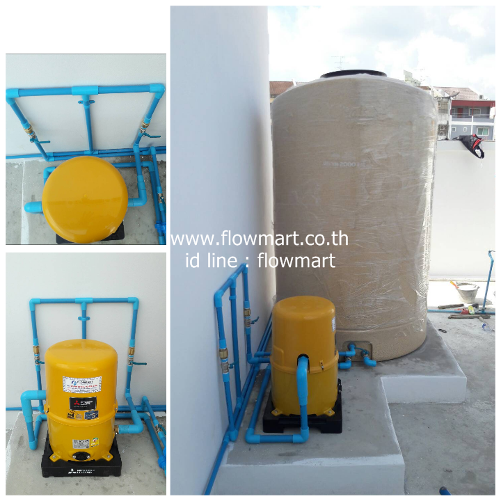 งานติดตั้งปั๊มน้ำแบบอัตโนมัติ Mitsubishi WP-355R + ถังเก็บน้ำ Entech ND 1000 ลิตร @ พัฒนาการ